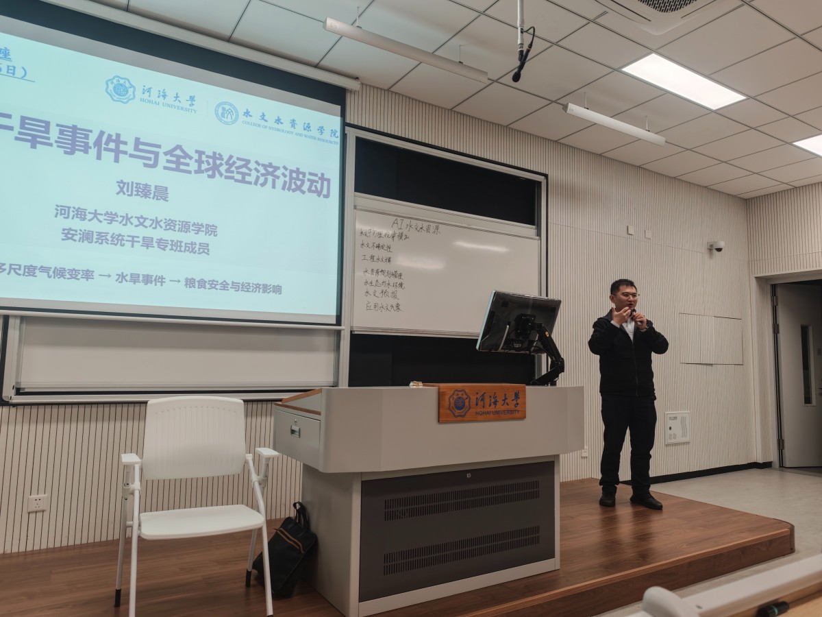 为拓展学生学术视野,推动学科交叉融合,11月26日,由河海大学水文水资源学院主办、溯源保护母亲河协会协办的第八十三期“水韵论坛”在常州校区顺利举行。本次活动作为“大学生科技社团支持计划”系列活动之一,特邀水文水资源学院副研究员刘臻晨老师为2024级本科生作题为《特大干旱事件体机理诊断和指挥预测》的学术报告。