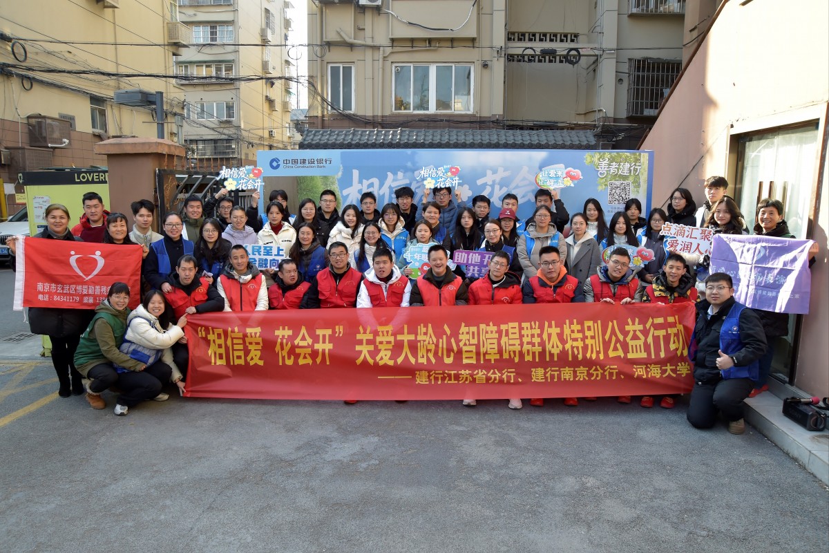 为深入弘扬“奉献、友爱、互助、进步”的志愿服务精神,引导青年学子积极投身社会实践、践行社会责任,12月27日上午,我院30名青年志愿者携手建设银行江苏省分行、南京分行“蓝精灵”志愿者团队,共同走进南京中央门街道养老综合服务中心旗下的南京市玄武区博爱勤善残疾人之家,参与“‘相信爱 花会开’关爱大龄心智障碍群体特别公益行动”,以真诚陪伴与实际行动,为大龄心智障碍群体送去冬日里的温暖与关怀。