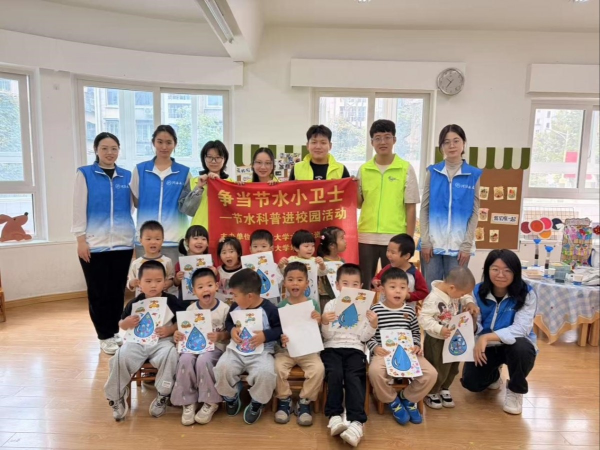 10月17日,由学院指导的校级社团溯源保护母亲河协会与水文院青年志愿者协会携手,走进河海大学幼儿园,为小班幼儿带来了一场以“争当节水小卫士”为主题的水资源科普公益活动,将节水种子播撒进孩子们的心田。