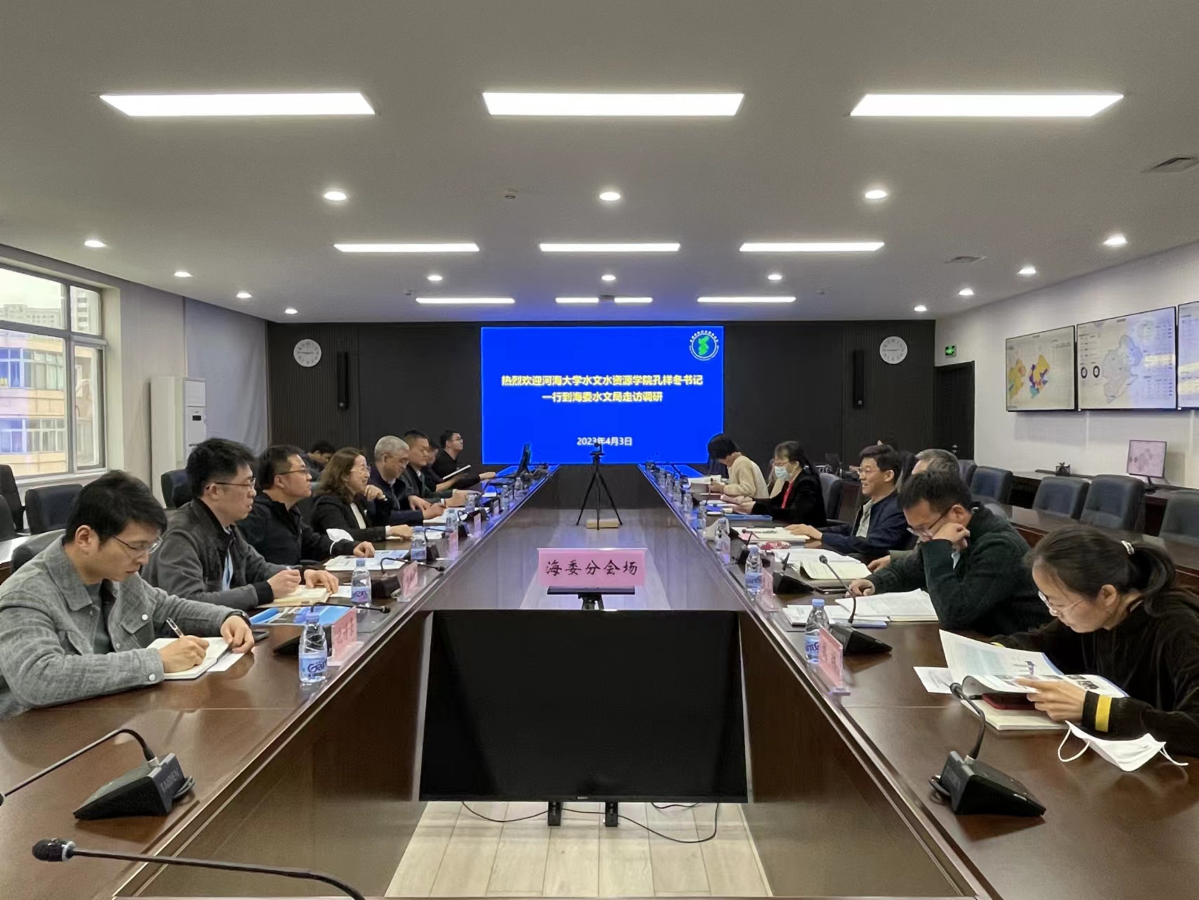 孔祥冬书记对海委水文局的热情接待和对我院人才培养、研究生实践的大力支持表示感谢,并说明了此次调研目的:一是在响应教育部、省教育厅的“访企拓岗”促就业专项行动,深入了解用人单位对于毕业生招聘的需求;二是围绕人才培养全面了解用人单位对毕业生培养的建议和意见;三是希望双方更加紧密联系,在科学研究方面开展深入的合作。雍斌副院长介绍了学院科研情况及未来发展规划,希望进一步加强沟通交流,推动双方高质量科研合作。