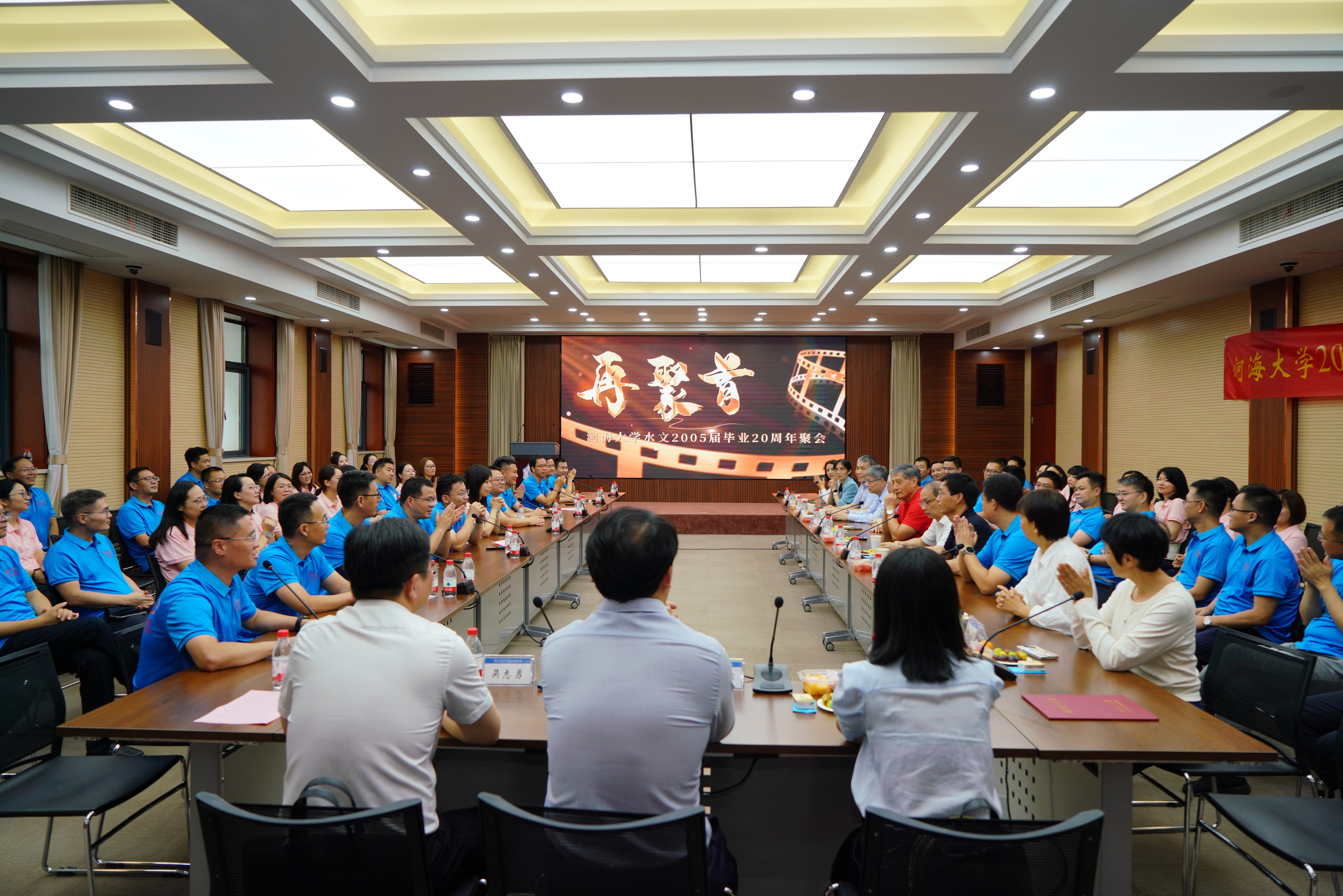 随后,各位校友踊跃发言,向母院和老师汇报毕业二十年来的工作和生活情况。有人坚守水文一线,守护江河安澜;有人在水电工程和新能源领域担当重任,参与建设了多个国之重器;有人跨行创业,将水文思维应用于更广阔的天地。一段段朴实真挚的分享,勾勒出一幅波澜壮阔的“河海水文人”群像,引发了在场师生的强烈共鸣。在恩师寄语环节,时任老师一一发言,勉励校友们在最当打的年纪拒绝躺平,奋勇前行,在未来的征程中书写更精彩的篇章,并叮嘱大家保重身体,祝愿家庭幸福!钟平安教授即兴赋诗一首(附后),勉励水文2001级校友“人生路漫漫,处处有风景,莫执念,不攀比,做好自己”。