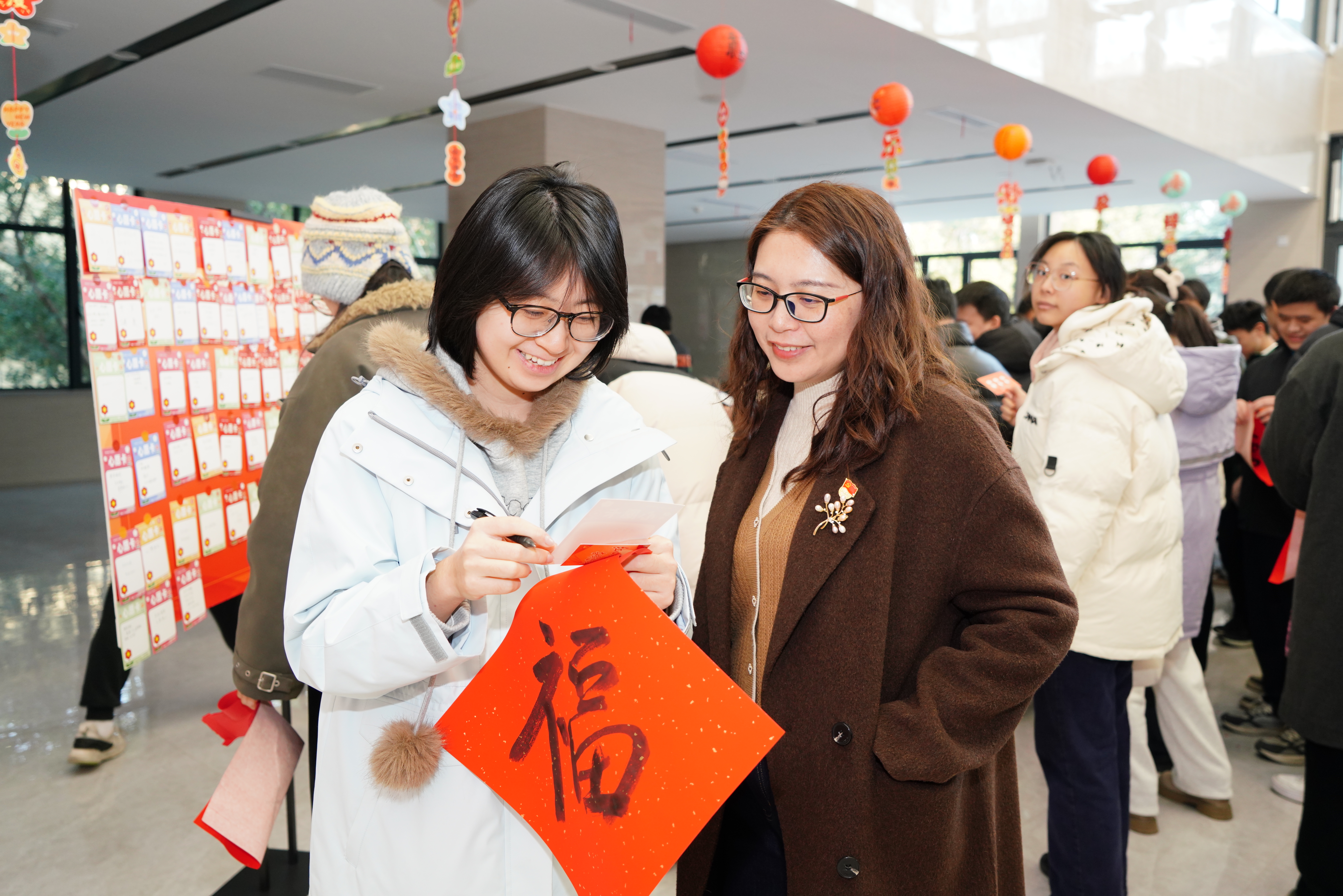 现场还设置党员先锋岗,由党员同学们为学院师生撰写“福”字、拍摄打卡照片,以实际行动展现新时代党员的担当与服务精神。此外,本次活动依托线上平台开展跨校区知识竞赛,增强了三校区联动与学习交流。