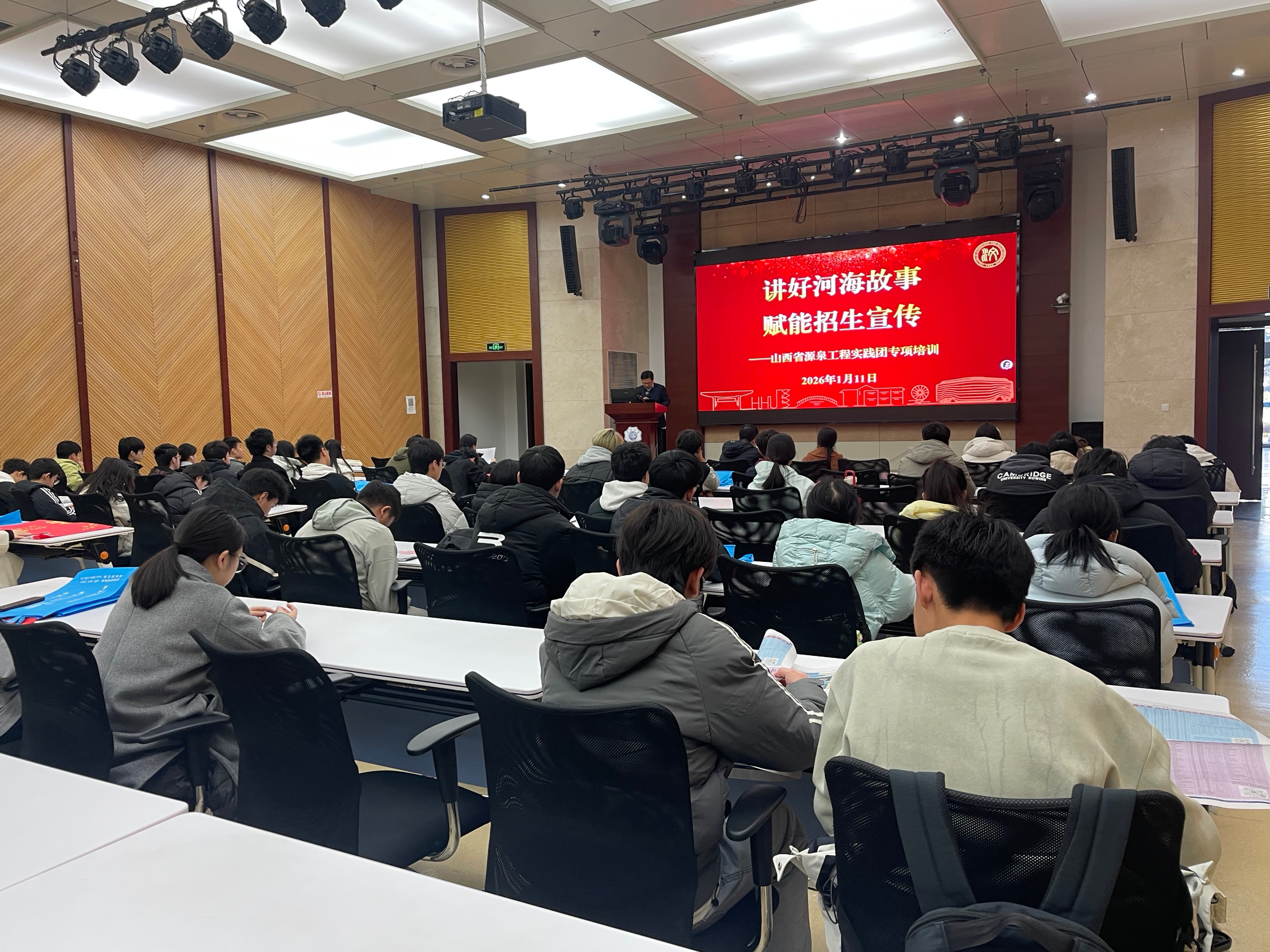 1月11日,2026年山西省“源泉工程”招生宣传社会实践活动专项培训会顺利举办。山西省招生组组长、水文院党委书记吴志勇,大同地区招生负责老师、信息科学与工程学院吴瑞元,运城地区招生负责老师、外国语学院贠冰洁,太原地区招生负责老师、水文院杨楠,山西地区联络员老师、水文院荆艳东等老师,与实践团全体成员共同参会,为即将启动的招生宣传社会实践凝聚力量、做好准备。